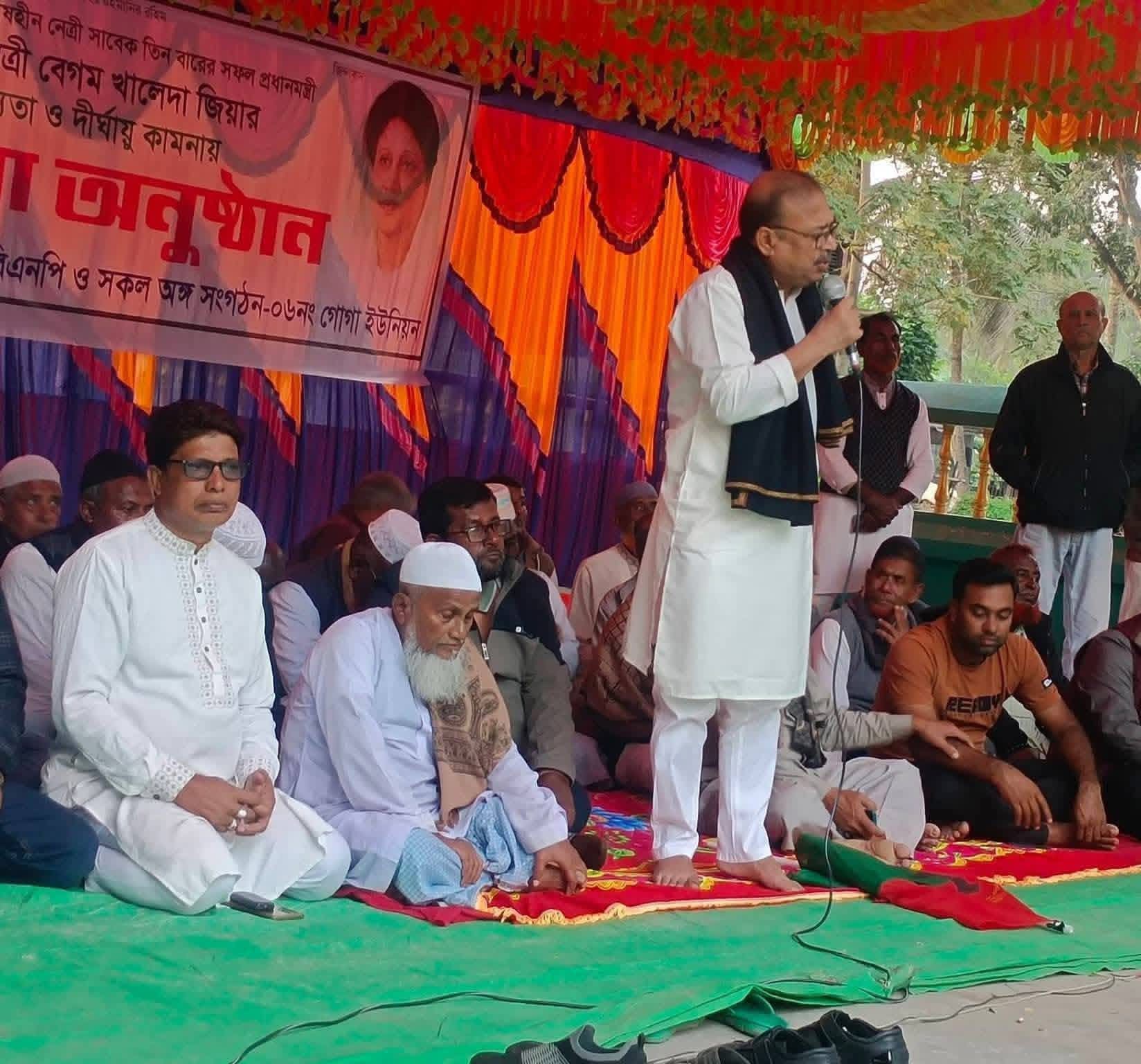 গোগা ইউনিয়ন বিএনপির সভাপতি মোঃ হজরত আলী মাস্টারের সভাপতিত্বে অনুষ্ঠিত হয় এই দোয়া মাহফিল। দোয়া ও মোনাজাত পরিচালনা করেন কারি আব্দুর সামাদ।