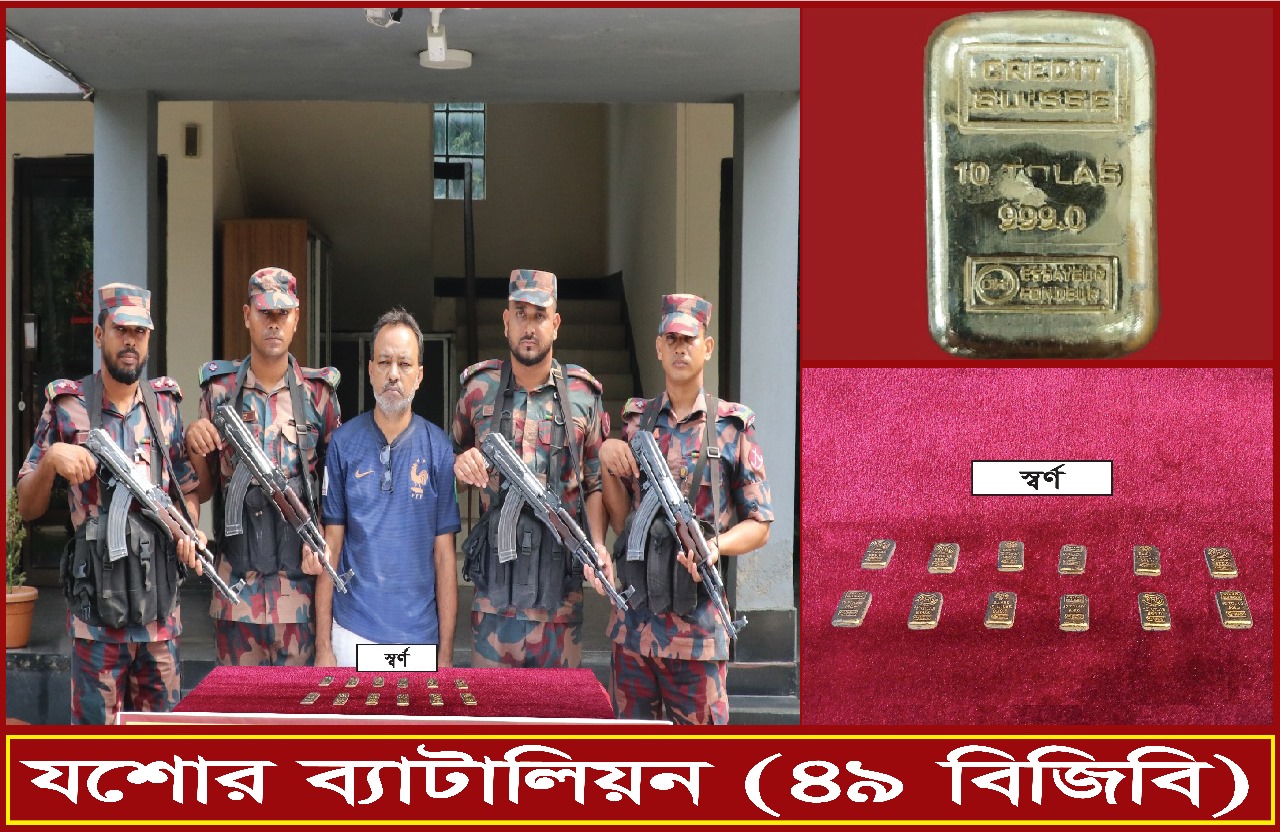 যশোরে ১২ পিস স্বর্ণের বার সহ এক পাচারকারী আটক