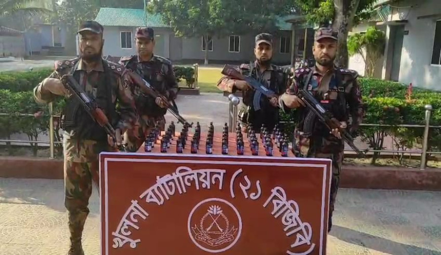 যশোরের শার্শা সীমান্তে ৫৫৫ বোতল ভারতীয় মাদকদ্রব্য জব্দ করেছে বিজিবি