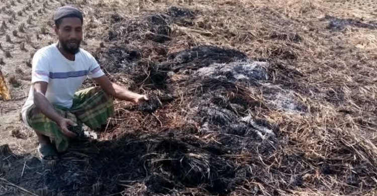 ঝিকরগাছায় পূর্ব শত্রুতার জেরে কৃষকের সারা বছরের ধান পুড়িয়ে দিল দুর্বৃত্তরা