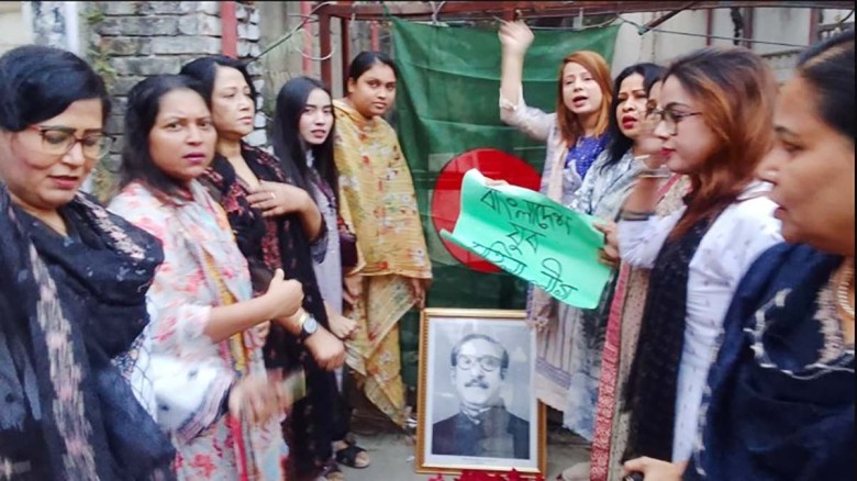 ধানমন্ডিতে ঝটিকা মিছিল ও স্লোগান: নেতৃত্বে যশোর যুব মহিলা লীগের সোনালী