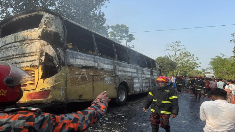 যশোর-নড়াইল মহাসড়কে চলন্ত বাসে আগুন